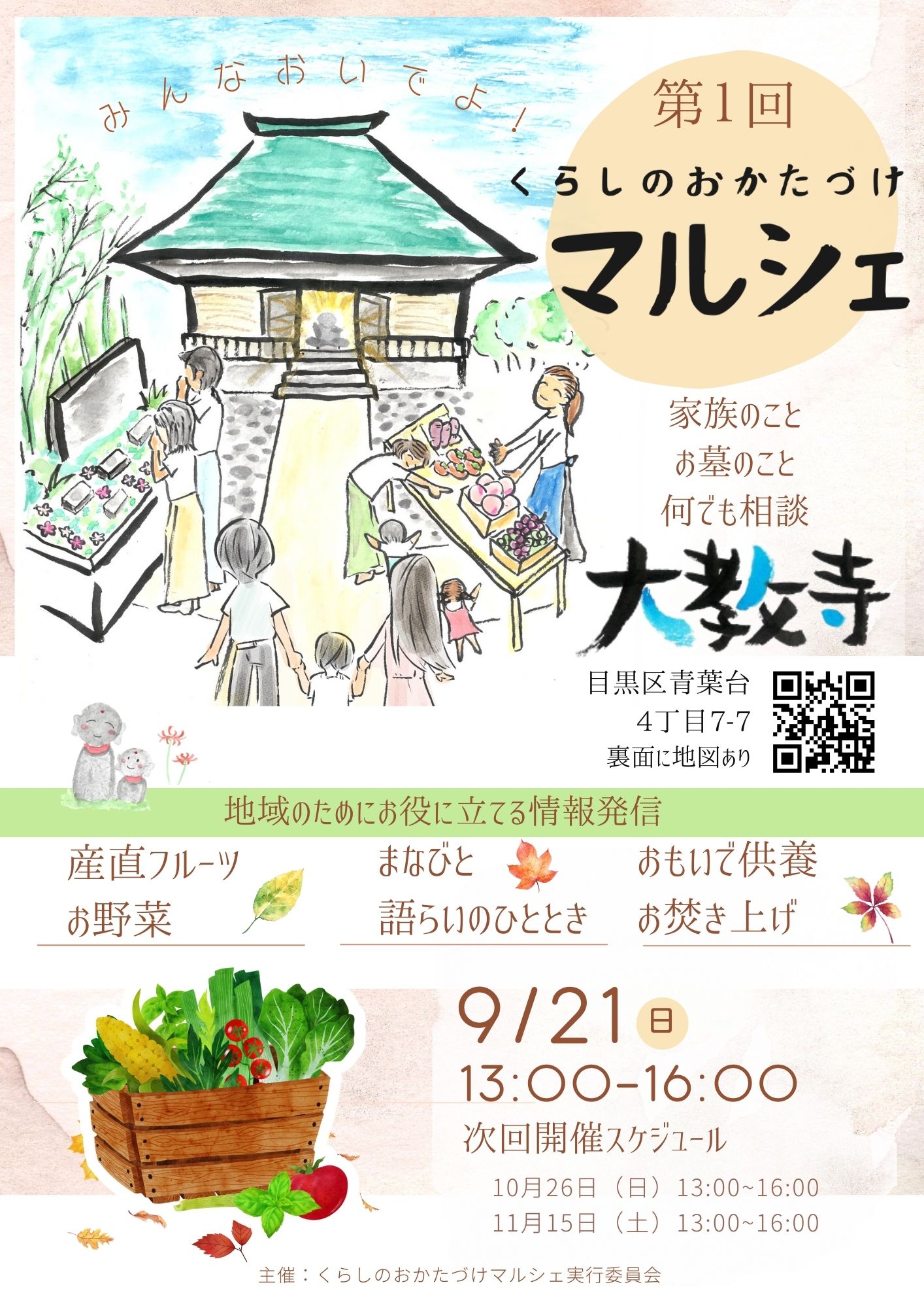 |   | 2025年10月06日 くらしのおかたづけマルシェ 開催のお知らせ10月26日(日)/11月15日(土)に大経寺にて「くらしのおかたづけマルシェ」を開催いたします。 葬祭カウンセラーや行政書士の専門家の先生方から、お墓や葬儀について学びながら、終活に役立つ思い出の品の整理方法を解説して […] |